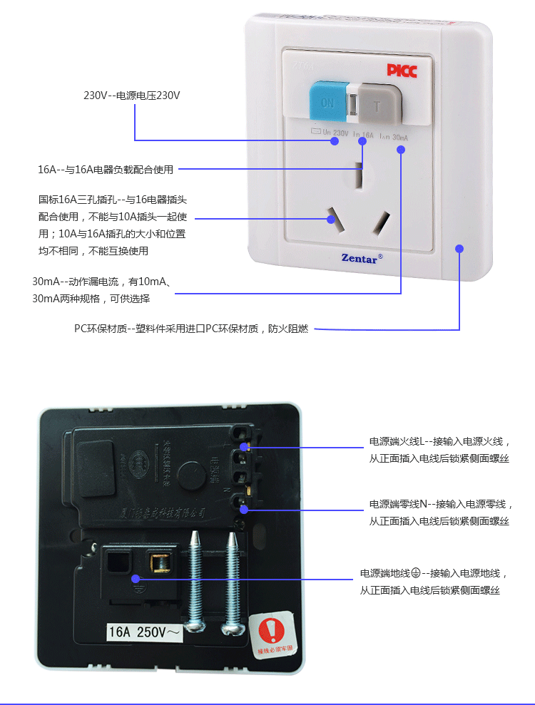 漏電保護(hù)墻壁型開關(guān)ZT6-10A/16A